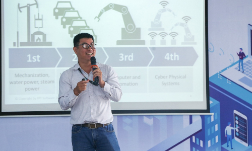 Khi gặp gỡ sinh viên Đại học Honghu (Đồng Nai) trong khuôn khổ khóa học xTour “Tuổi trẻ 4.0”, Đinh Vũ Quốc Trung, giáo sư nội trú FPT Software, cho biết: Điện năng giúp cải thiện năng suất vì con người có thể làm việc cả ngày lẫn đêm. Ông cũng tin rằng “nhà máy thông minh” sẽ là sản phẩm tiêu biểu trong thời đại công nghệ.