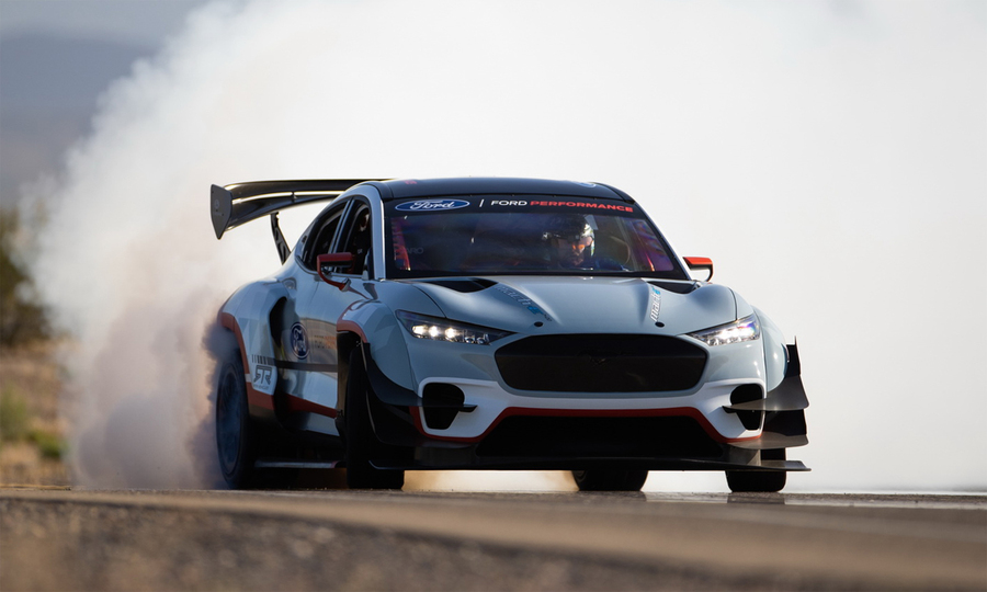 Phiên bản đua của Mustang Mach-E có công suất 1400 mã lực. Ảnh: Ford-Ford Performance và RTR đã cùng nhau tạo ra Mach-E 1400, bao gồm lắp đặt bộ tản nhiệt lớn ở phía trước và phía sau xe để giúp làm mát động cơ điện và máy biến áp. Tần suất và pin. Một số cài đặt tùy chỉnh khác có thể làm cho trôi đến trạng thái tốt nhất.